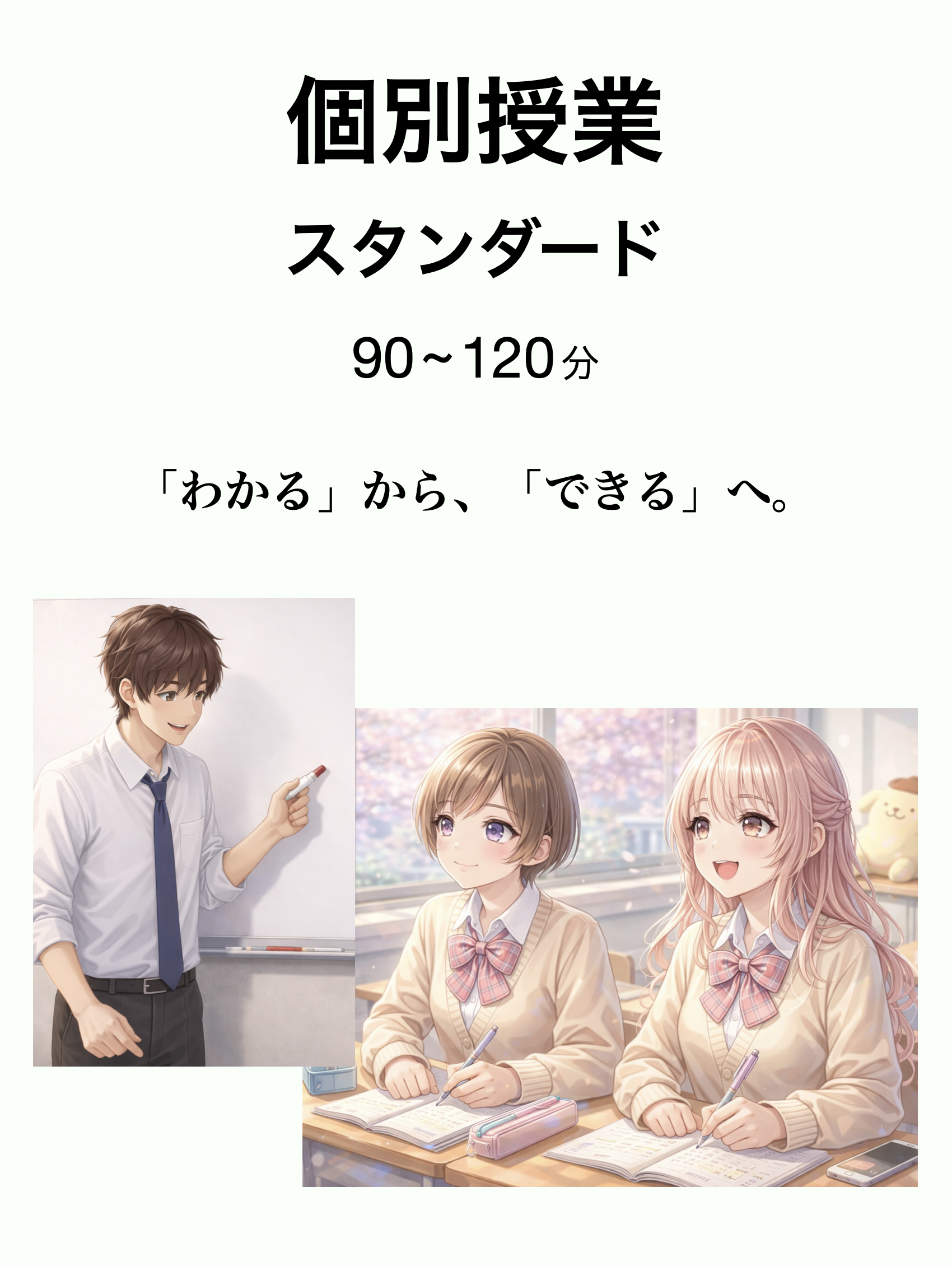 よくある個別指導ではなく、一人ひとりに深く向き合う個別授業で「考える力」を育てます。